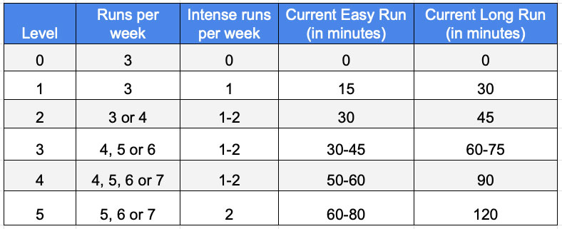 To guide you to the correct training plan, I’ve created six runner “levels.”